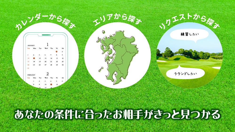 気軽にラウンドにいくお相手を探す事ができるマッチングシステムです。
